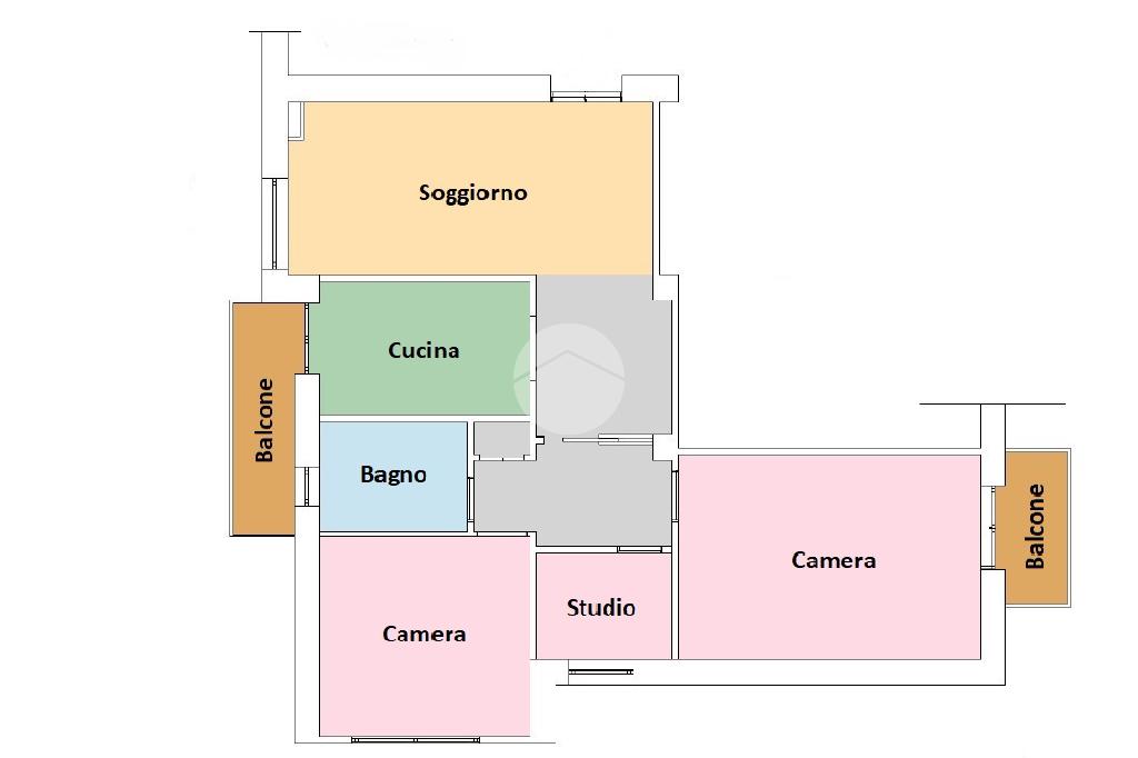 L'immobile si compone di ingresso con soggiorno a vista, cucina, due ampie camere, studio/ripostiglio con finestra, bagno, due balconi.