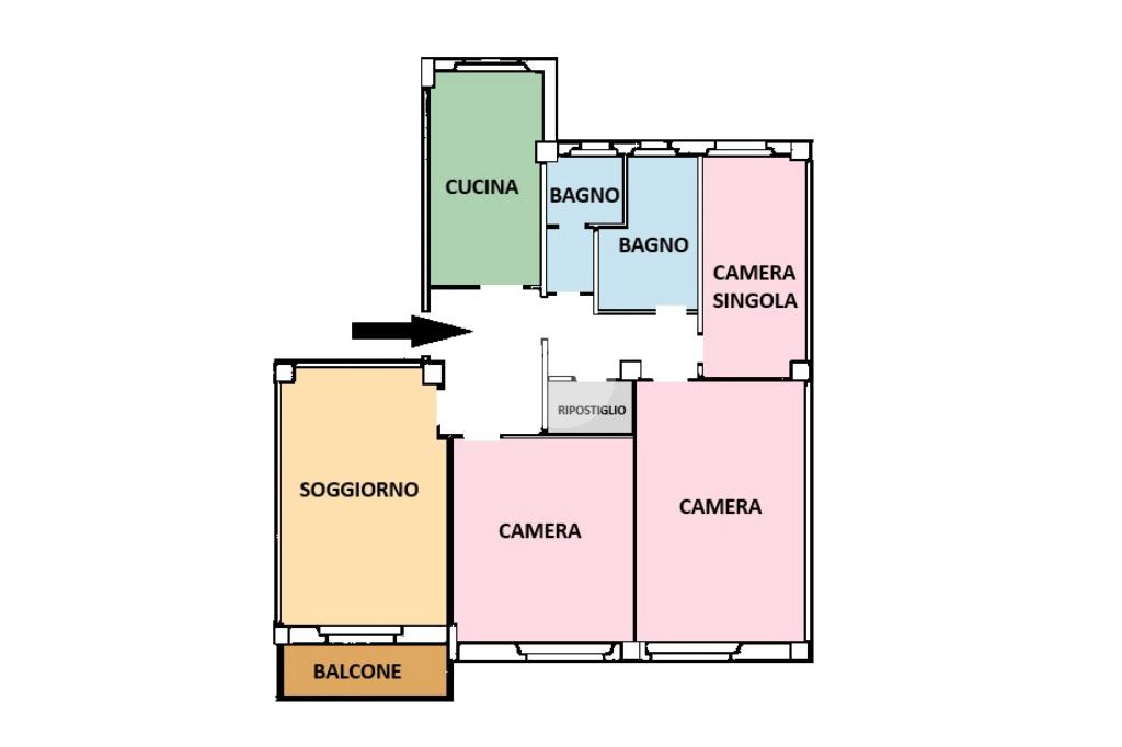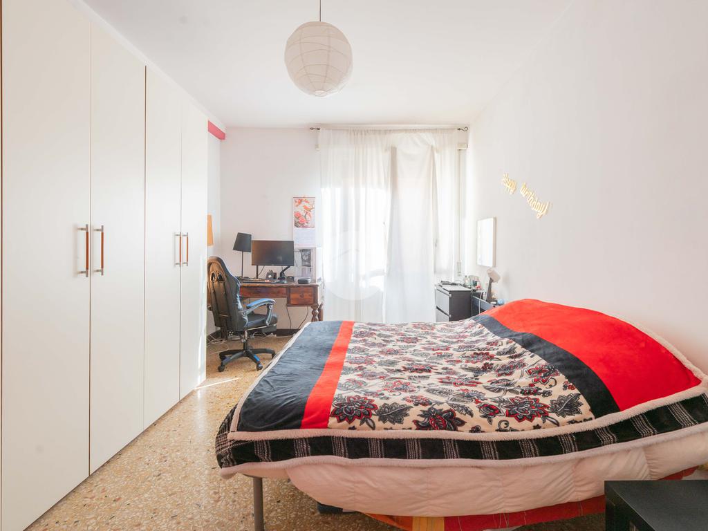 Internamente l’appartamento si compone di soggiorno con balcone, ampia cucina abitabile, due camere matrimoniali, una camera singola, due bagni completi con finestra e un ripostiglio.